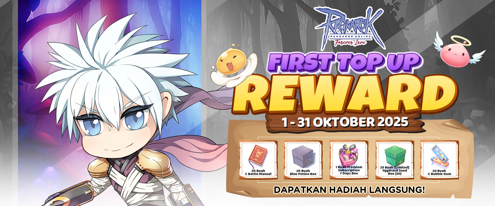 - Event ini stack dengan event Topup apapun yang sedang berjalan pada game Ragnarok Forever Love.