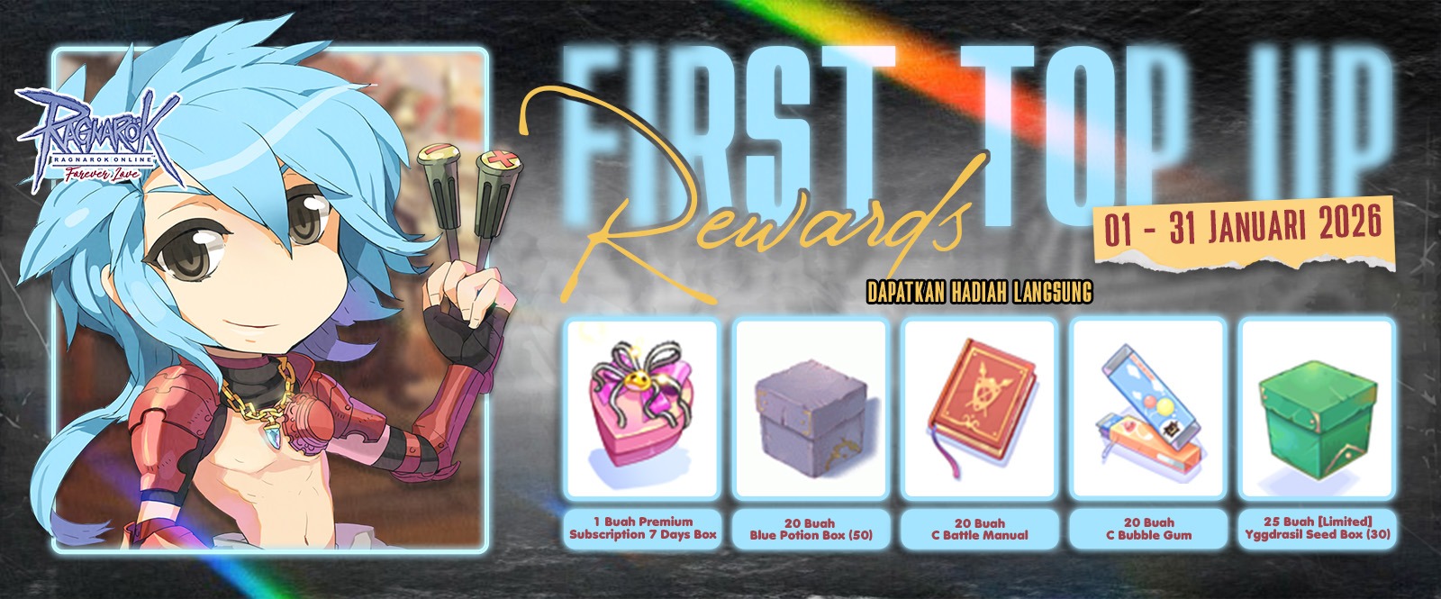- Event ini stack dengan event Topup apapun yang sedang berjalan pada game Ragnarok Forever Love.