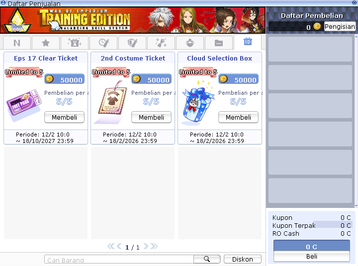 Untuk RO Mania yang melakukan pembelian Item senilai 700,000 RO Cash atau lebih (Tidak harus Item Flash Sale),