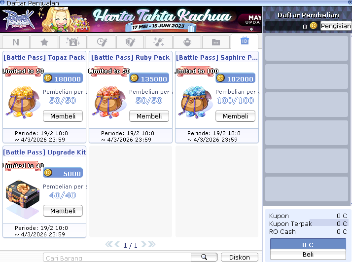 - Pembelian item akan terhitung ke semua event spend yang sedang berjalan