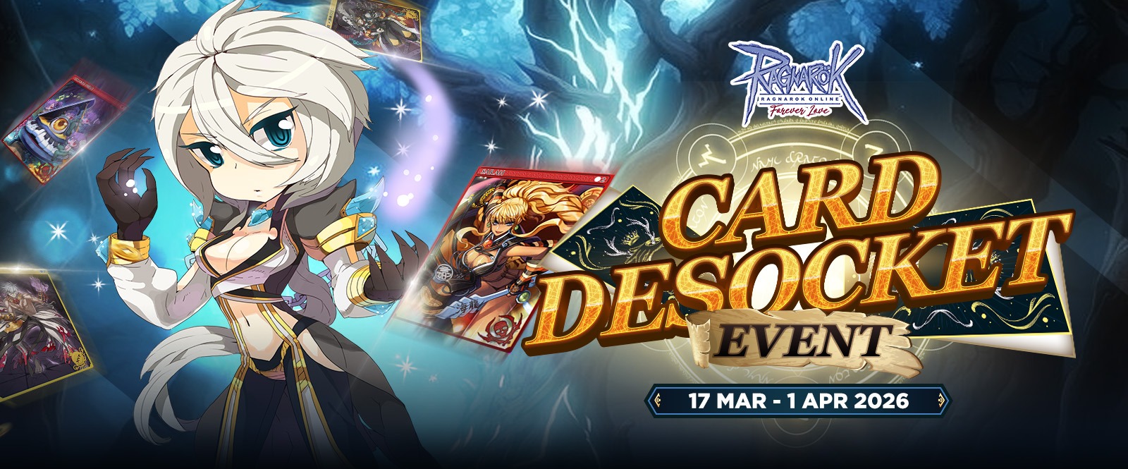 Untuk menyambut bulan ini, Tim Ragnarok : Forever Love sudah menyiapkan event special llhoo~ Apalagi ini pasti sangat membantu kamu yang mempunyai equipment berharga. Event ini adalah Card Desocket Event. Pengen tau jelasnya? Simak detilnya dibawah ini !