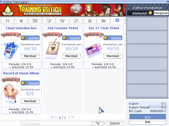 Max. Pembelian per akun: 10